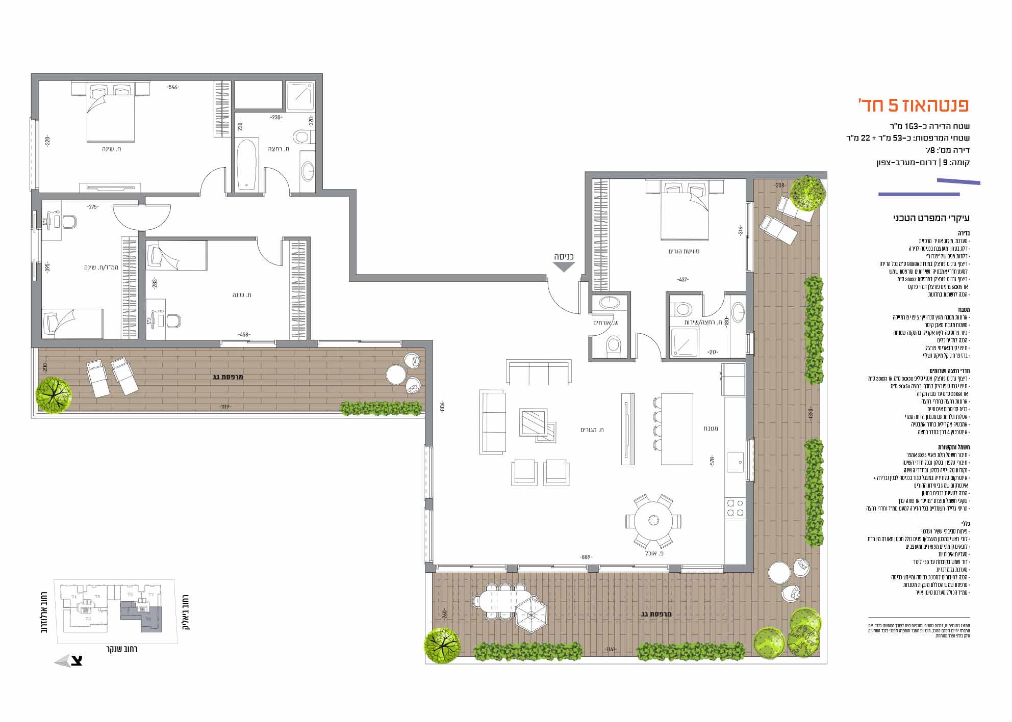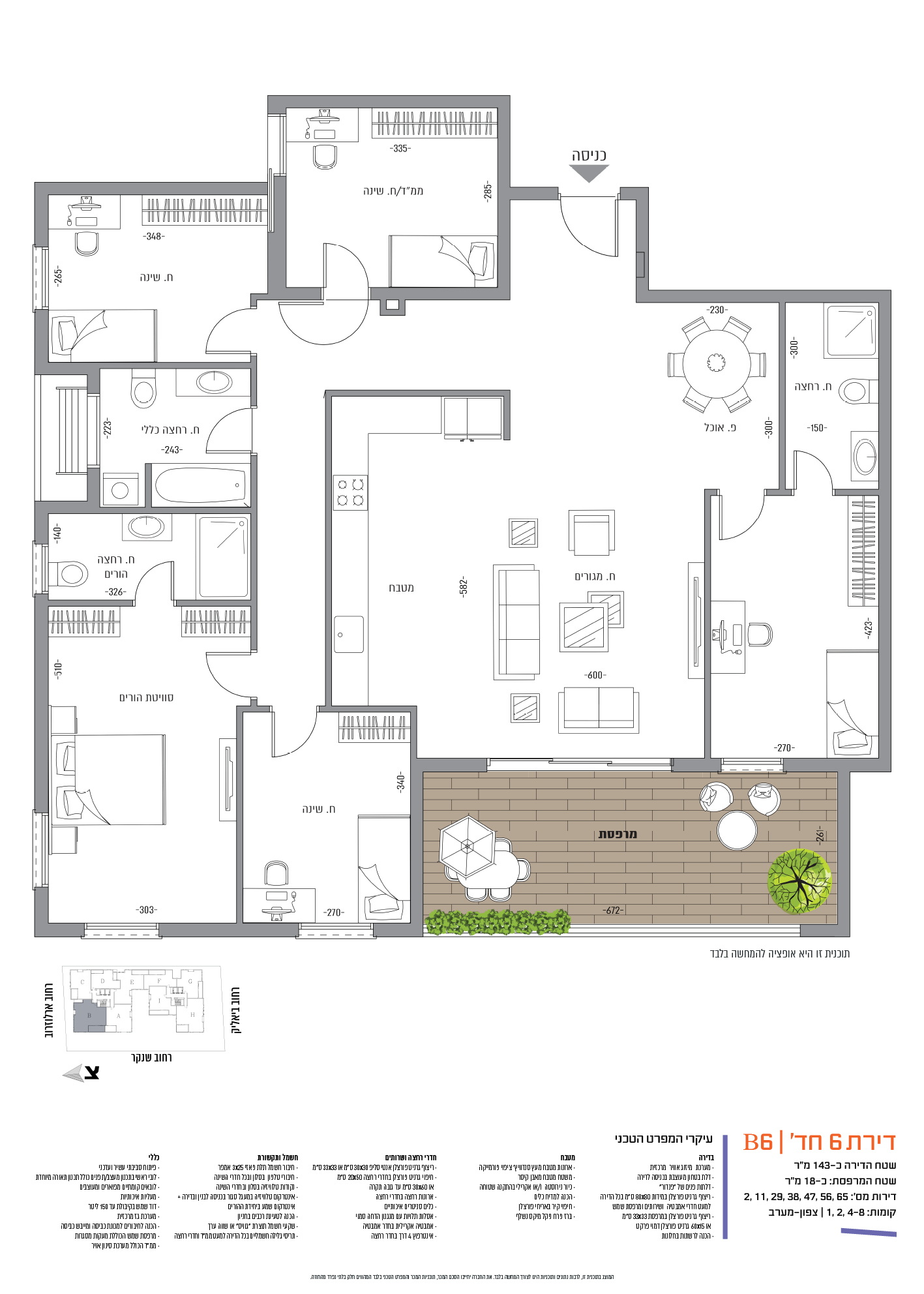 תוכניות אלו, לרבות ריהוט, אביזרים, מידות, הדמיות, הינן לצורך המחשה בלבד. לחוזה המכר מצורפים מפרט טכני ותוכניות מכר והם אלו אשר מחייבים את החברה בלבד. תוכניות אלו אינן מהוות מצג או הצעה ולא יהיו חלק מתנאי ההתקשרות/הסכם בין הצדדים. שמות המוצרים אינם סופיים. החברה רשאית להחליף עפ"י שיקול דעתה מוצר שווה ערך. | ט.ל.ח